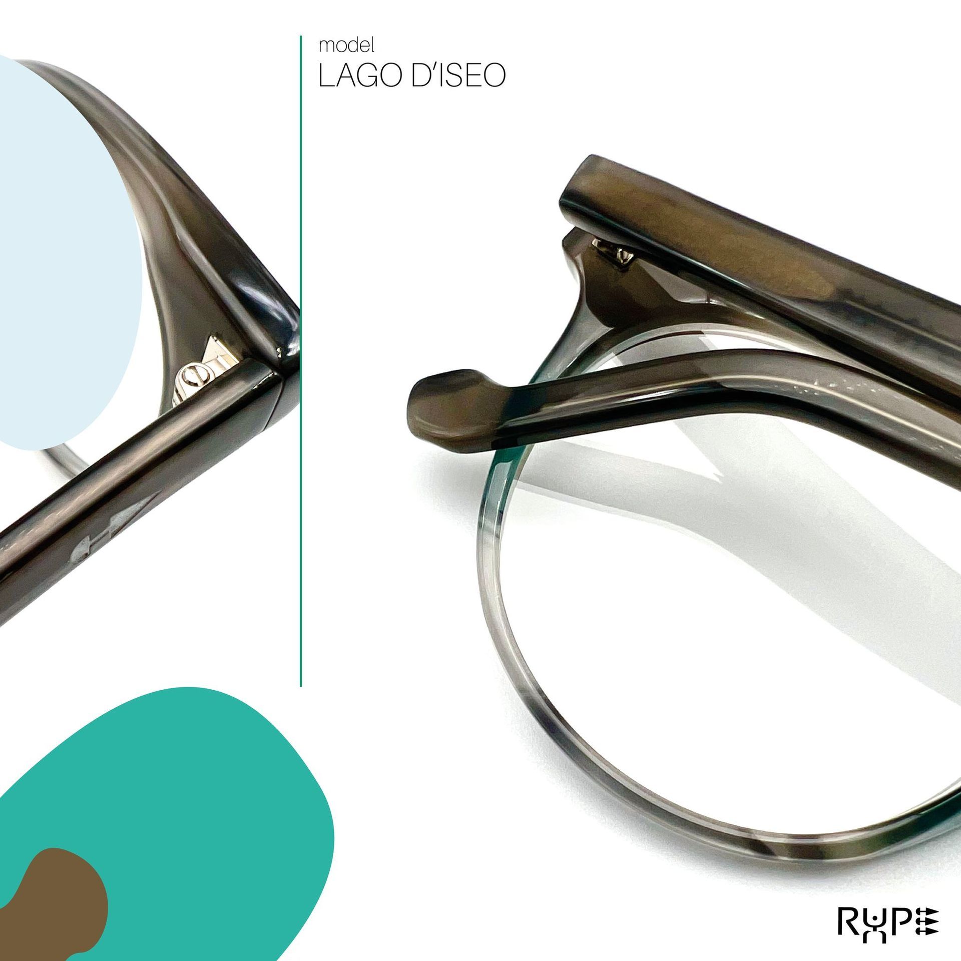 I colori di questa montatura evocano la serenità e l'armonia delle acque del lago nella parte esterna e le sfumature della natura che lo circonda nella parte interna.